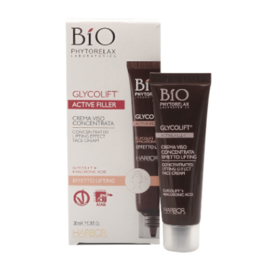 Die Bio Phytorelax Concentrated Lifting Effect Face Cream mit Glycolift (30ml) ist eine konzentrierte Gesichtscreme mit Lifting-Effekt, mit Glycolift. Hilft Deiner Haut, ihre natürliche Elastizität wiederzuerlangen. Mindert kleine Fältchen. Gibt Deiner Haut Festigkeit und Spannkraft. Glycolift®: ist eine Mischung aus intelligenten Zuckern mit Eigenschaften, die der müden Haut kurz- und langfristig Halt und Spannkraft geben. Hyaluronsäure: mit hohem Molekulargewicht, wirkt an der Oberfläche und hilft, die Hautfeuchtigkeit zu erhalten. Hyaluronsäure mit niedrigem Molekulargewicht, wirkt in der Tiefe und ist in der Lage, eine Anti-Falten-Wirkung zu entfalten.